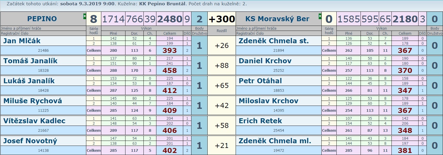 Jan Mlčák 393:367 Zdeněk Chmela st.