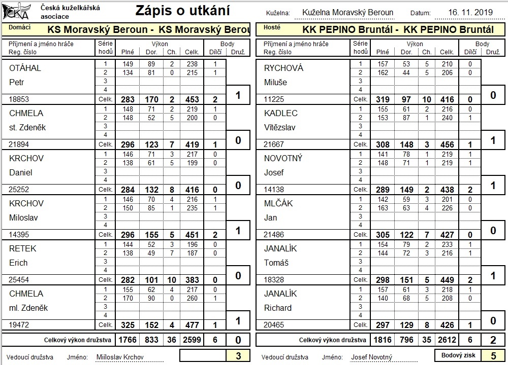 KS Moravský Beroun A - KK Pepino Bruntál 3:5