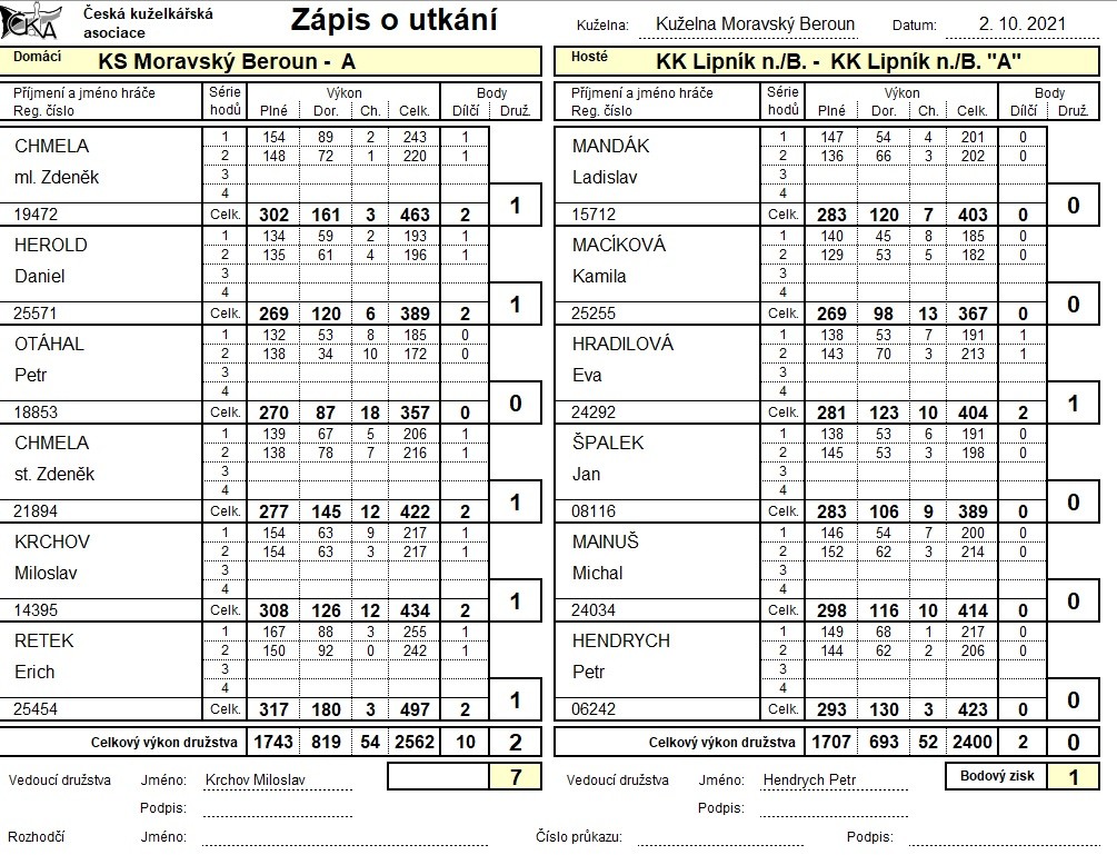 KS Moravský Beroun A - KK Lipník nad Bečvou A 7:1