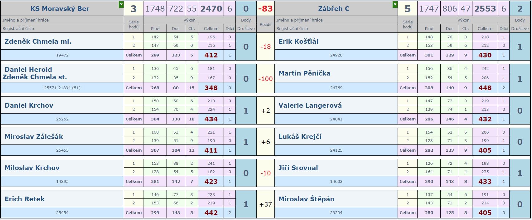 Miloslav Krchov 423:433 Jiří Srovnal