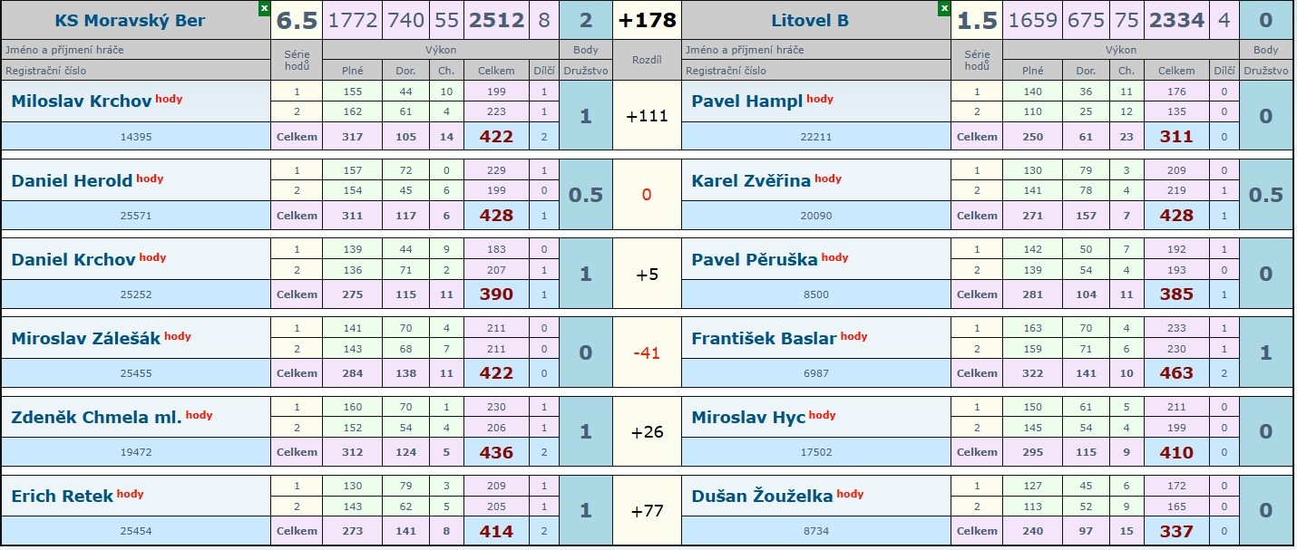 KS Moravský Beroun A - TJ Tatran Litovel B 6,5:1,5