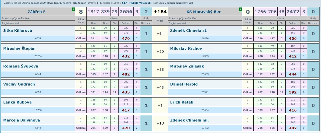 Jitka Killarová 470:406 Zdeněk Chmela st.