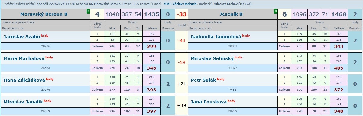 KS Moravský Beroun B - SKK Jeseník B 4:6