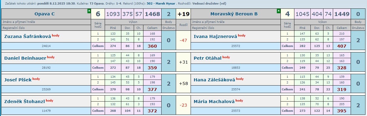 Zuzana Šafránková 360:407 Ivana Hajznerová