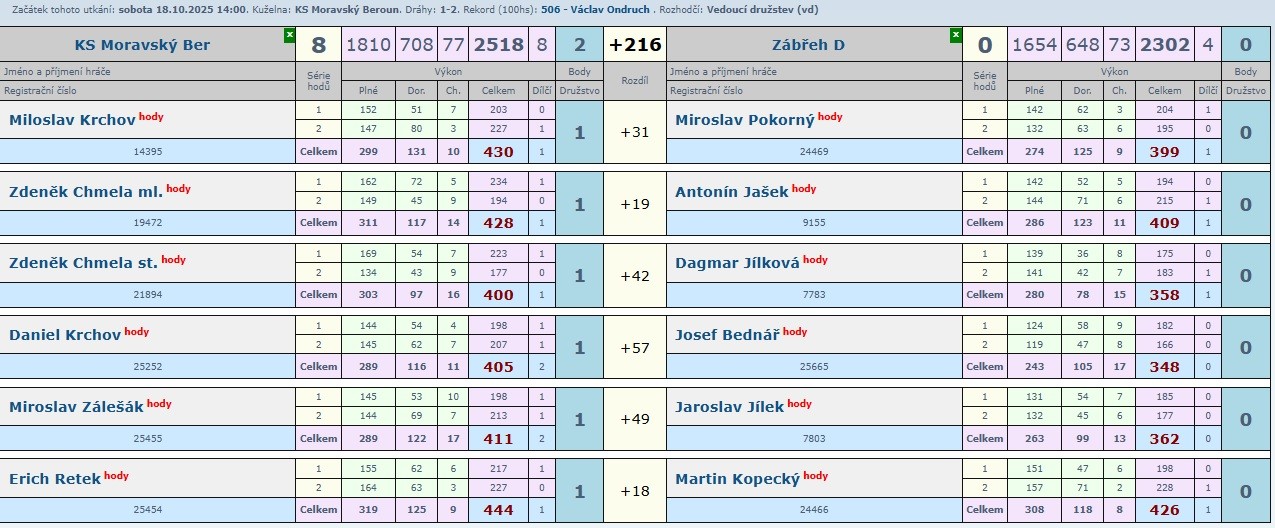 Miloslav Krchov 430:399 Miroslav Pokorný