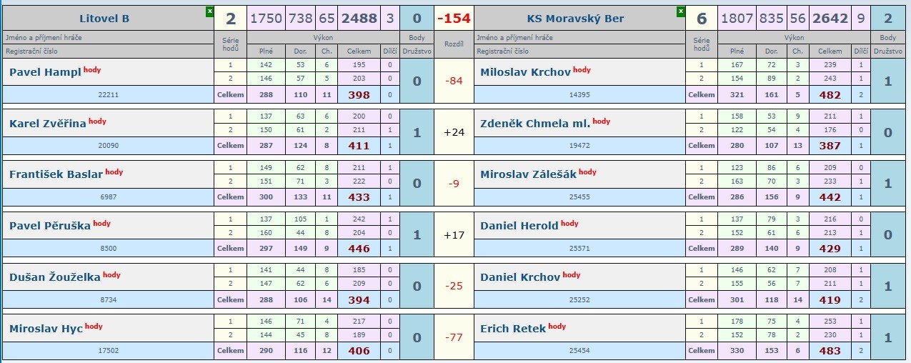 Karel Zvěřina 411:387 Zdeněk Chmela ml.