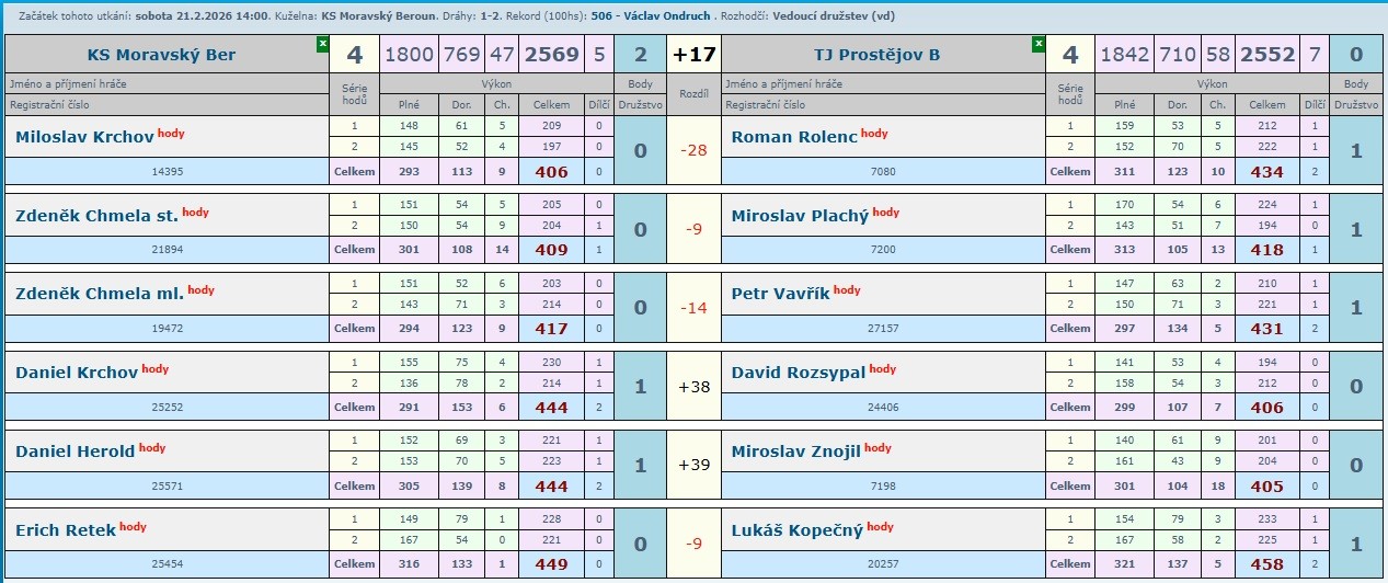 KS Moravský Beroun A - TJ Prostějov B 4:4